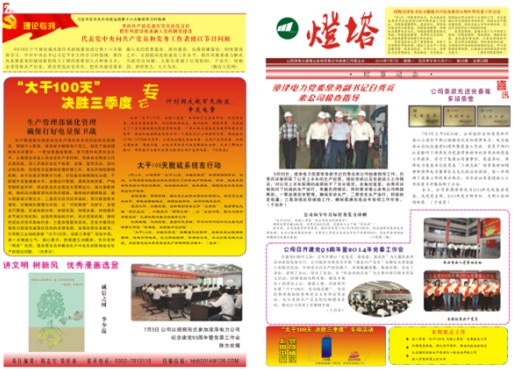 2014年6月26日,國能中電塔山維護項目部參加山西漳電大唐塔山發(fā)電公司召開的“大干100天、決勝三季度”專項活動動員會,并與業(yè)主簽訂了安全生產責任狀。項目部為此制定了各項組織、技術、安全措施。同時,項目部專題稿件“大干100天,脫硫在行動”榮登于塔山發(fā)電公司《塔山燈塔報》第23期一、二版。
